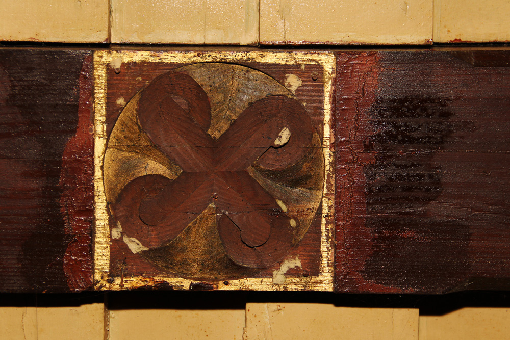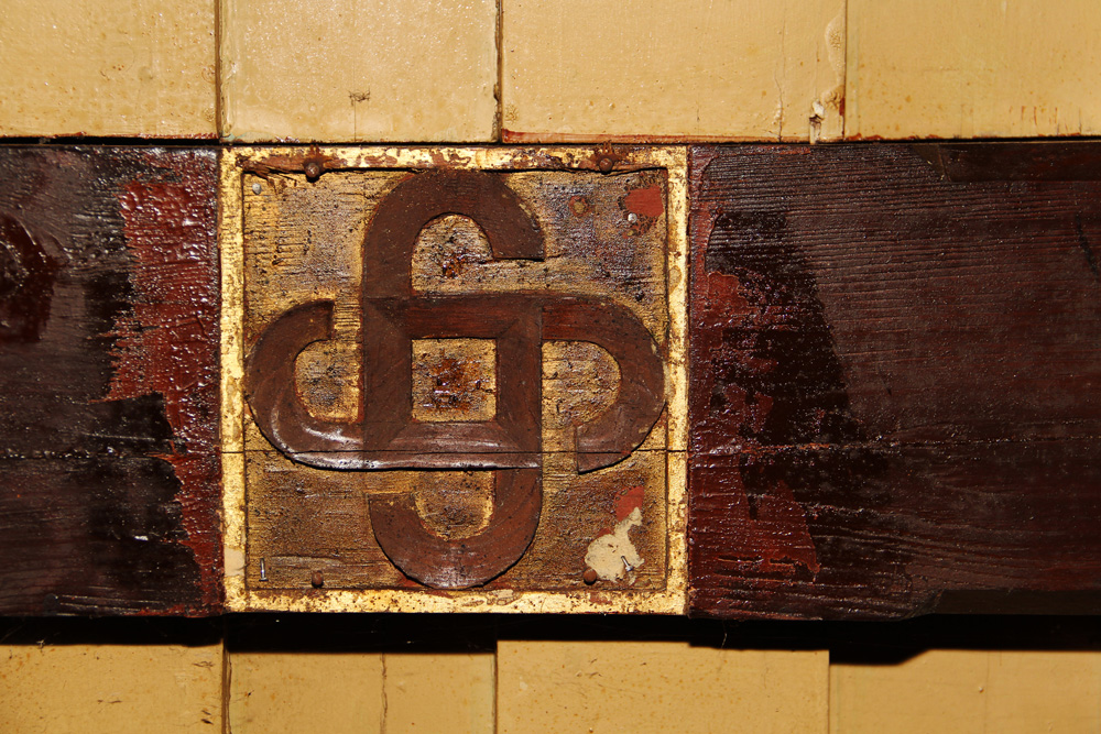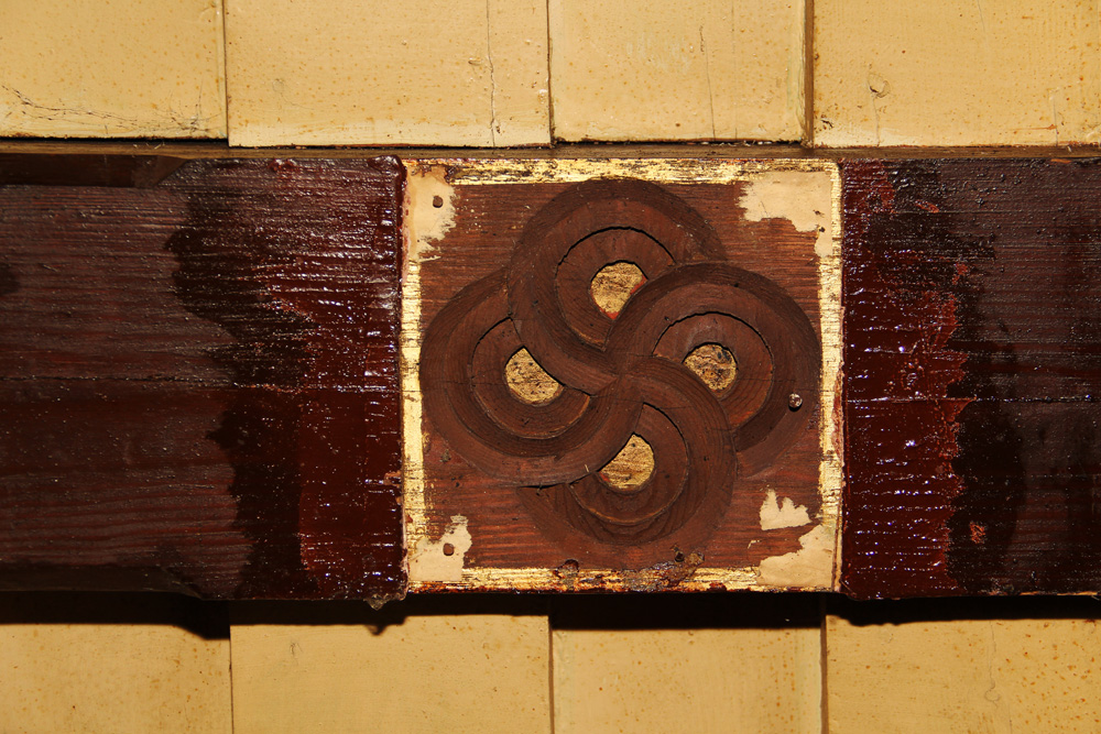 W małej niepozornej chatce na suficie znajdziemy projekty swastyk. Podobno pozostałe znaki są innymi propozycjami jakie się pojawiły.